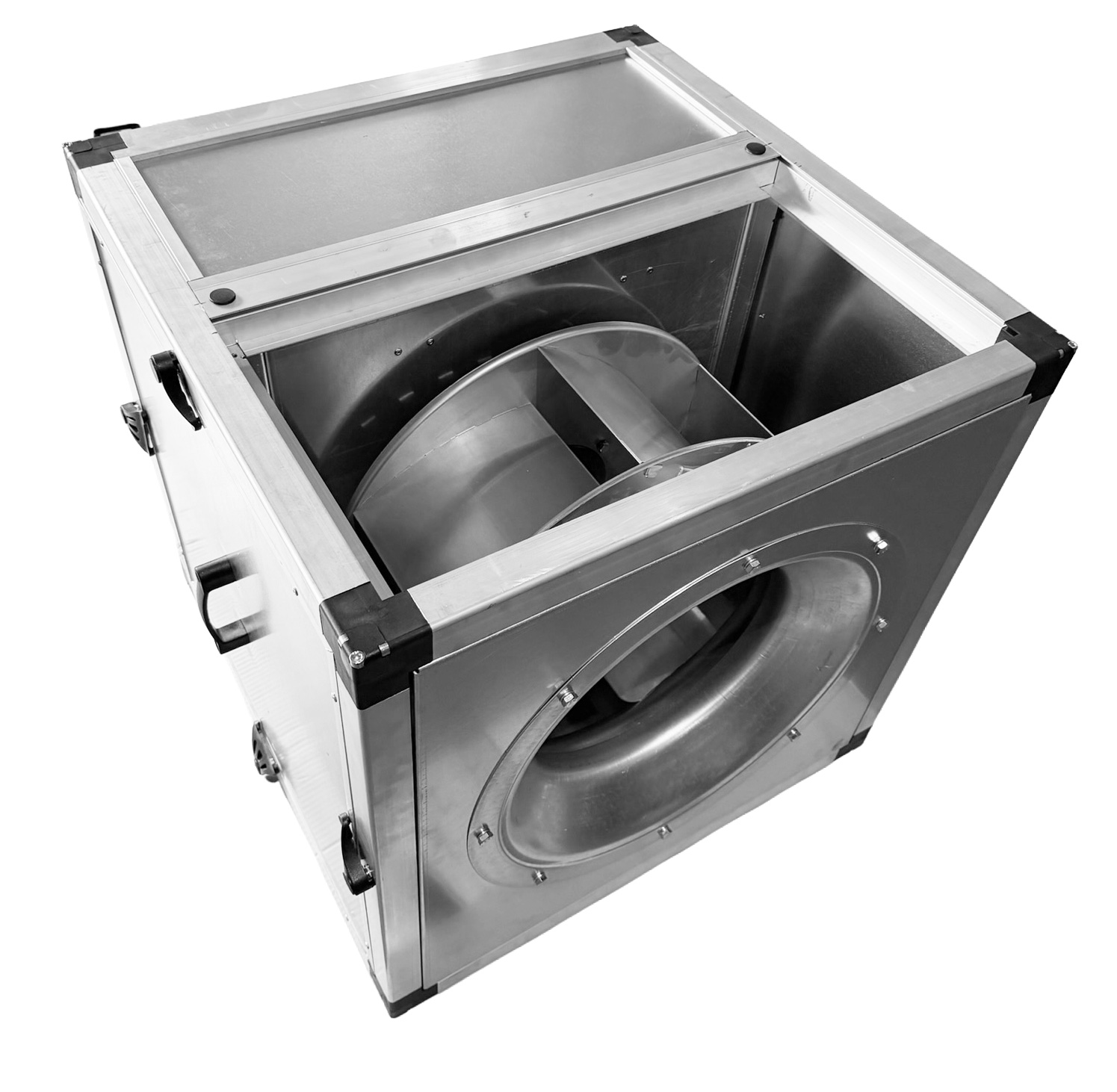 Urządzenia są w pełni odporne na działanie oparów tłuszczu i kondensatu. Higienę pracy wspiera zintegrowana taca ociekowa, która gromadzi ewentualne zanieczyszczenia. Solidna, modułowa obudowa wykonana z profili aluminiowych oraz blachy ocynkowanej z rdzeniem poliuretanowym pozwala na łatwe dostosowanie jednostki do specyficznych wymagań instalacji. Modele dostępne są w dwóch wariantach wymiarowych: 670 mm oraz 800 mm. Nad bezpieczeństwem czuwa termiczne zabezpieczenie uzwojeń oraz seryjnie montowany wyłącznik remontowy. Wydajność jednostki można precyzyjnie kontrolować za pomocą przemienników częstotliwości lub regulatorów napięciowych.