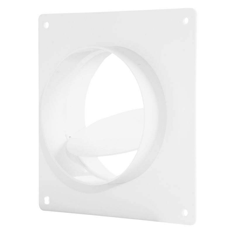 Kołnierz przyścienny z przepustnicą wykonany z białego tworzywa ABS.