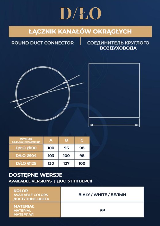 Łącznik kanałów okrągłych służy do połączenia okrągłych kanałów wentylacyjnych lub elementów systemu wentylacyjnego z kratką wentylacyjną.