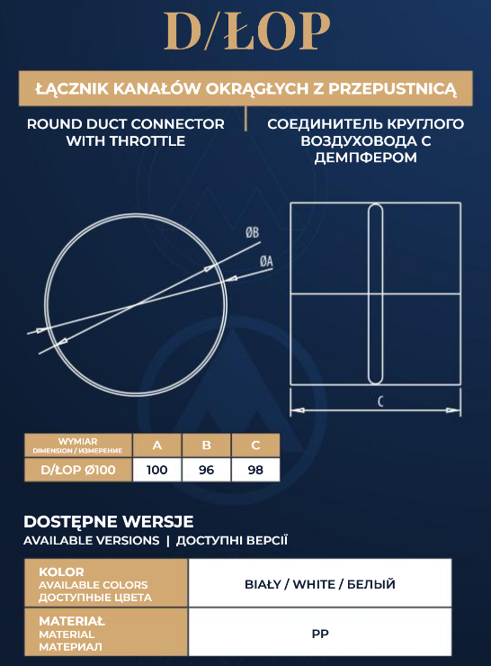 Elementy kanałów łączy się metodą „na wcisk” bez konieczności uszczelniania. Łącznik wyprodukowany w Polsce. 50-letnie doświadczenie firmy DOSPEL w produkcji to gwarancja najwyższej jakości.