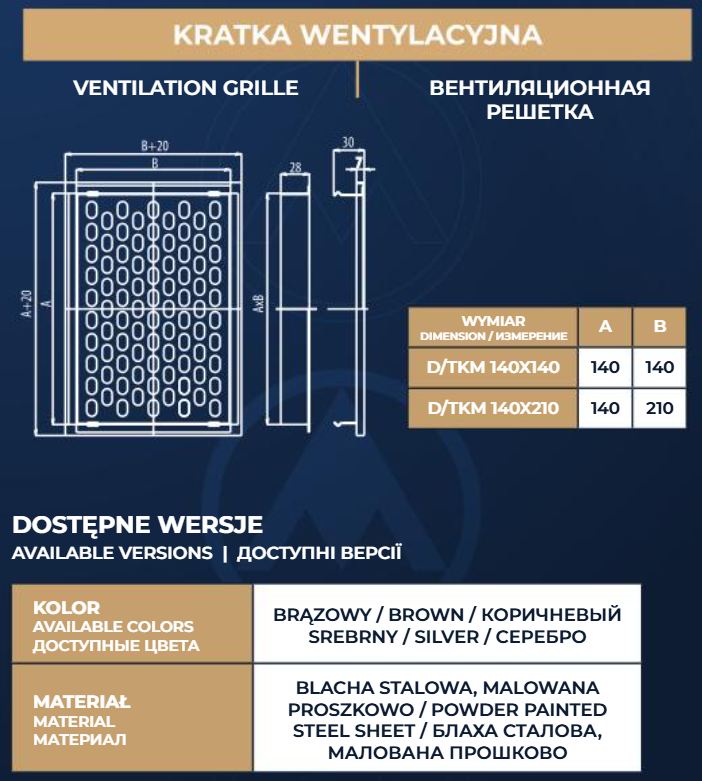 D/TKM 140x210B Kratka metalowa ścienna do wewnątrz