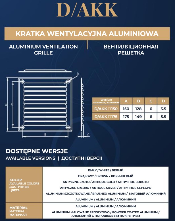 ## D/AKK 150 /A-Z (kratka aluminium /antyk-złoto)