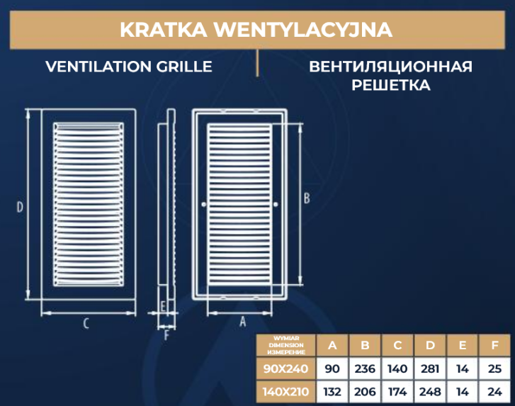 Tradycyjna kratka wentylacyjna wykorzystywana do zakończenia lub rozpoczęcia instalacji wentylacyjnej w domach, mieszkaniach lub w budynkach użytkowych i przemysłowych. Ponadczasowy wygląd pozwala na wykorzystanie jej w różnych wnętrzach. 50-letnie doświadczenie firmy DOSPEL w produkcji to gwarancja najwyższej jakości.