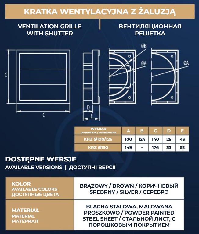 Kratka wentylacyjna z żaluzją grawitacyjną to bardzo funkcjonalne rozwiązanie. Pod wpływem przepływu powietrza żaluzja otwiera się. W wyniku wyłączenia wentylatora, kratka zamyka się. Kratka wentylacyjna z żaluzją grawitacyjną zapobiega powstawaniu wstecznego ciągu w instalacji wentylacyjnej, dzięki czemu redukuje straty ciepła oraz chroni wnętrze instalacji wentylacyjnej przed działaniem czynników atmosferycznych. Dostępna w różnych wariantach kolorystycznych. 50-letnie doświadczenie firmy DOSPEL w produkcji to gwarancja najwyższej jakości.