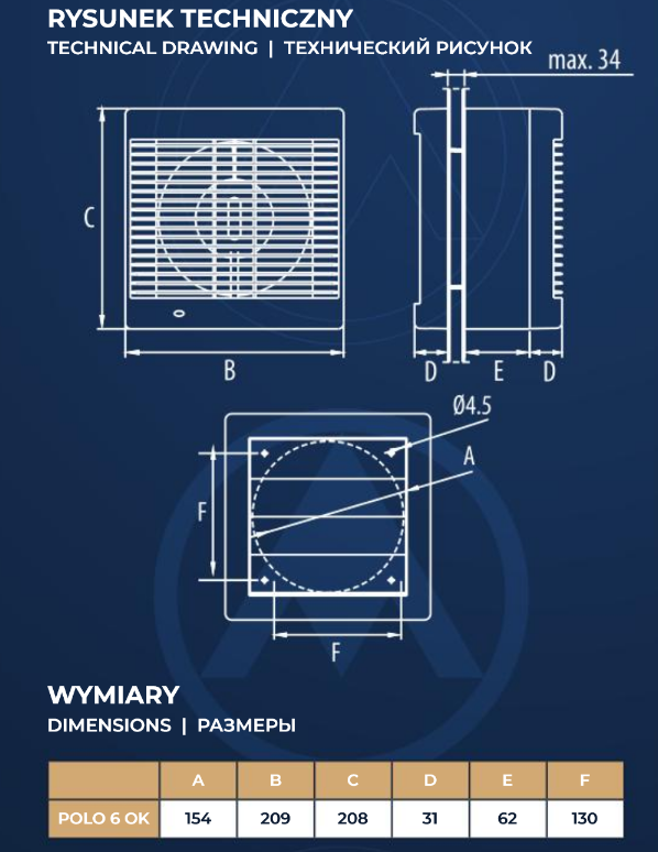 Wentylator osiowy okienny POLO 6 OK o wymiarach fi 150 mm. Wykonany z tworzywa sztucznego ABS. Lakierowanie powłoką UV sprawia, że farbowany na biało wentylator nie żółknie, ale zachowuje swoją pierwotną barwę.