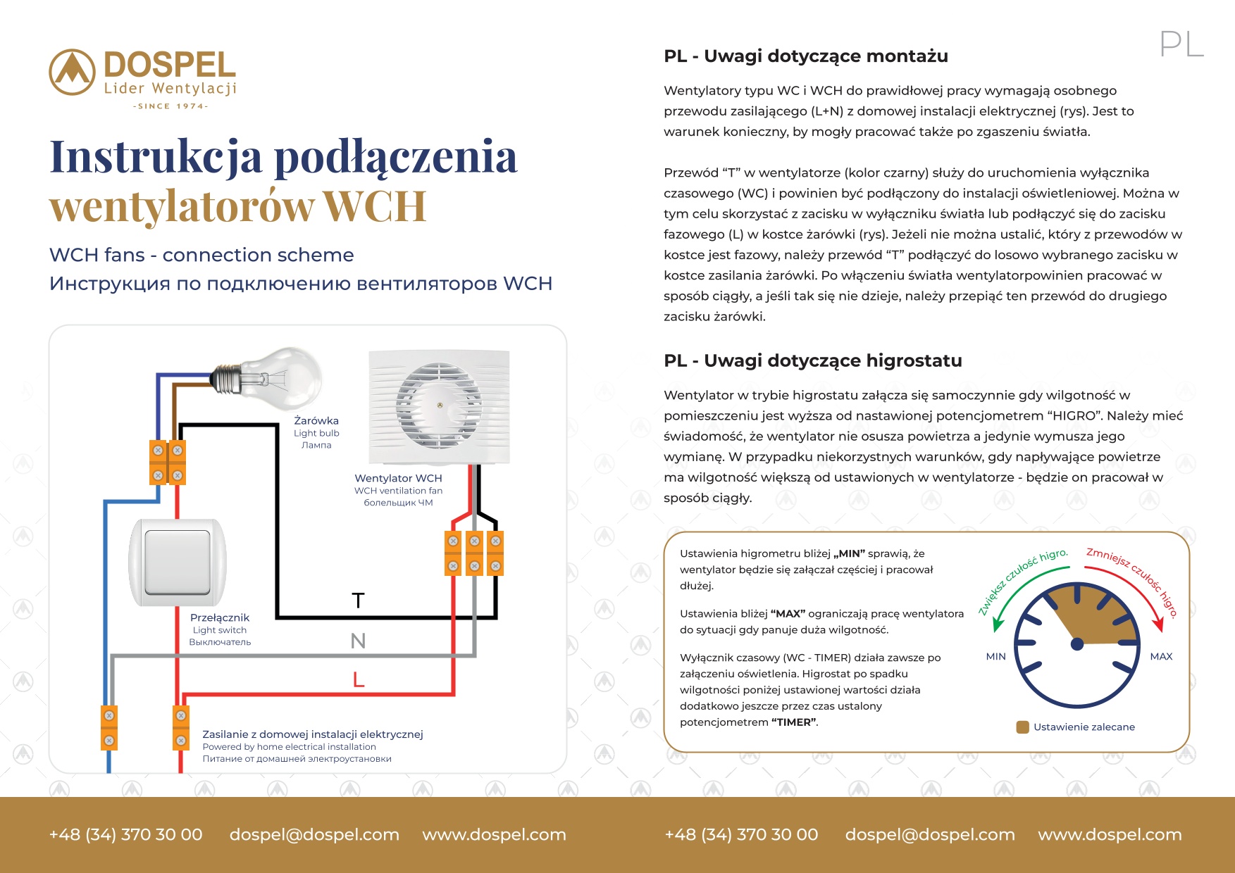 Wentylator posiada wyłącznik czasowy oraz higrostat, czyli czujnik wilgoci, dzięki czemu działa jeszcze skuteczniej. Wyłącznik czasowy sprawia, że wentylator działa jeszcze przez określony czas po naszym rzekomym jego wyłączeniu, dzięki czemu mamy pewność, że kiedy opuścimy już pomieszczenie wentylator dalej efektownie będzie wietrzył pomieszczenie przez czas ustawiony na zegarze. Czujnik poziomu wilgotności, czyli higrostat sprawia, że wentylator będzie się włączał i wyłączał zgodnie z wartościami ustalonymi na potencjometrze, daje nam to pewność, że urządzenie pozbędzie się zbędnej wilgoci w pomieszczeniu redukując ryzyko pleśni i grzybów.
